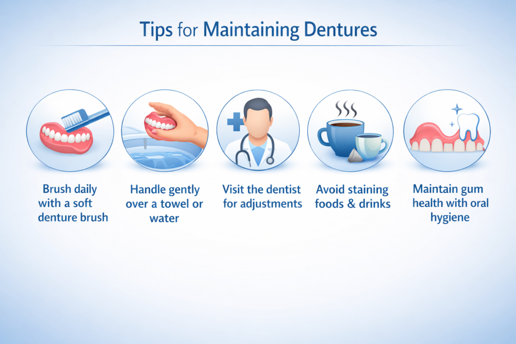 Proper care, such as cleaning your dentures daily, handling them with care, and visiting your dentist regularly for adjustments, can help extend their lifespan.